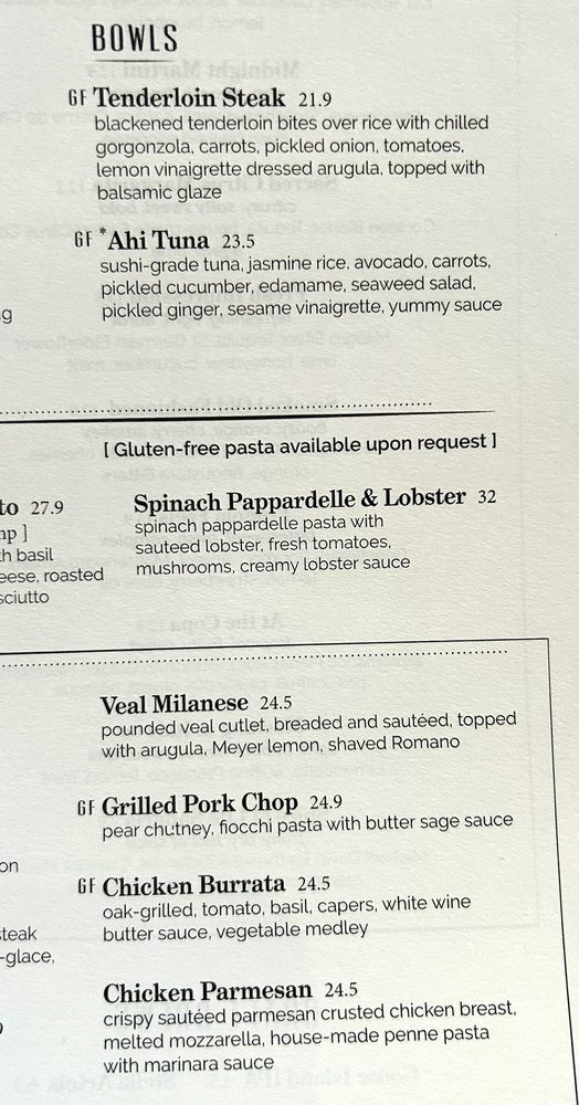 Blackened filet mignon, jasmine rice, bacon, gorgonzola cheese, carrots, pickled onion, brussel sprouts, fresh arugula, lemon vinaigrette