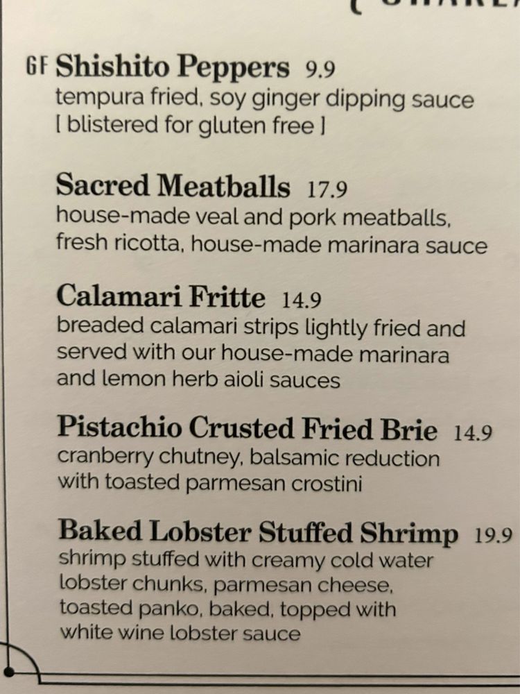 three house-made veal and pork meatballs, fresh ricotta, marinara sauce