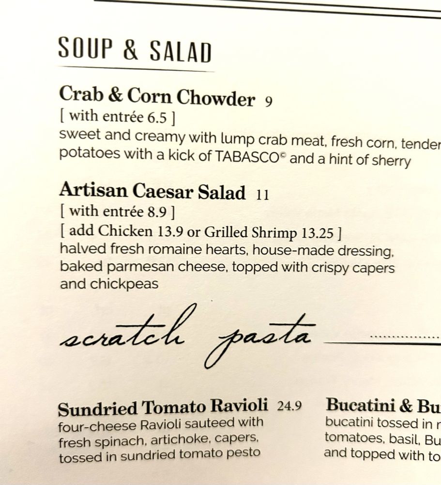 sweet and creamy with lump crab meat, fresh corn, tender potatoes with a kick of TABASCO and a hint of sherry