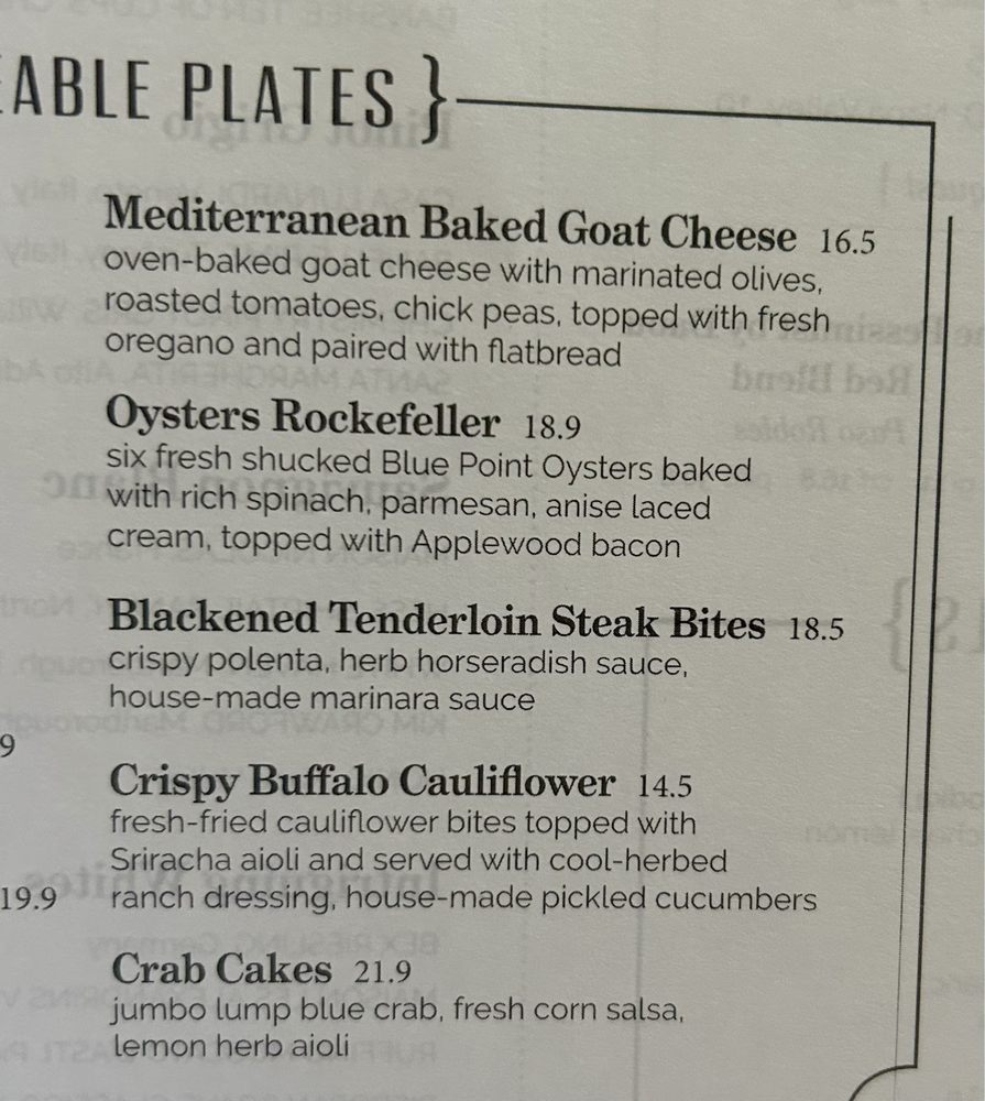 six fresh shucked Blue Point Oysters baked with rich spinach, parmesan, anise laced cream and topped with Applewood bacon